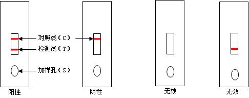 4 失效:在观察孔内,对照线区(C)和检测线区(T)都不出现色线;或仅检测线区(T)出现色线。